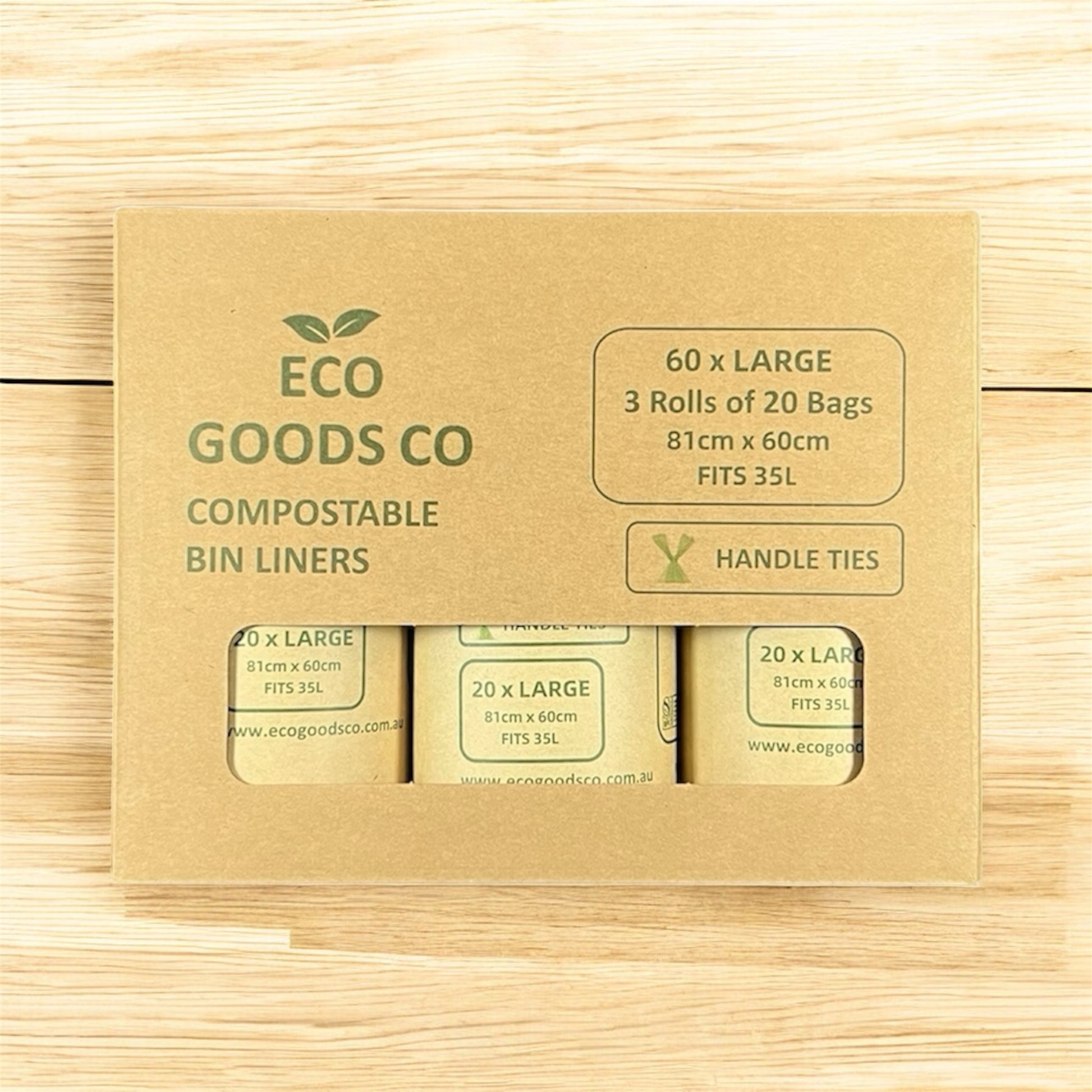 - 60 of our 35L Large compostable, biodegradable and plastic free bin liners (3 rolls of 20 bags)